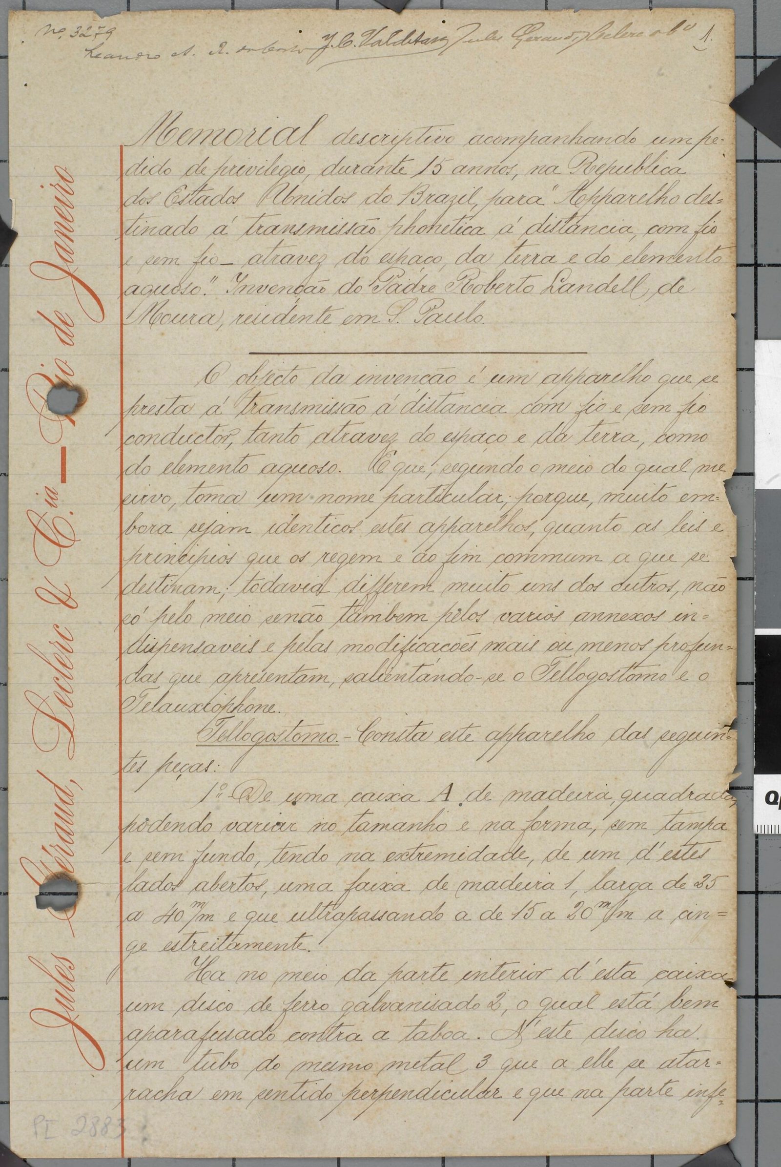 Fonte: livro ” Landell. The priest who invented wireless and faced science deniers” por Hamilton Almeida